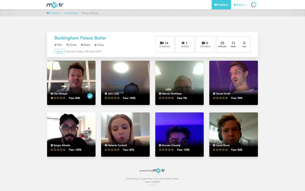 Meetr is a recruitment and applicant processing web app for SMEs. It posts jobs across multiple job boards and social sites with the click of a button, then automatically tests and interviews through video recording potential new recruits. It allows recruiters to easily filter, review and create notes about candidates. See more
